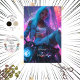This striking poster features a cool chick with blue hair sitting confidently on a motorcycle. Set against a vibrant neon-lit backdrop, she wears denim jeans and a jacket, showcasing intricate tattoo artwork on her torso. The urban night scene adds a dynamic and edgy vibe, making this piece a standout addition to any collection. Nostalgic or futuristic chick?