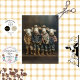 This whimsical image features four cows standing upright and dressed in casual human attire, including denim jackets, plaid shirts, and boots. Each cow is adorned with a hat, giving them a quirky and anthropomorphic appearance. Set against a simple background, this unique blend of animal imagery and human fashion elements creates a charming and rustic aesthetic. Perfect for use as decoupage tissue paper, this design by RHDesigns of 2chattychicks adds a touch of fun and creativity to furniture, scrapbooking projects, canvas artwork, poster art, and home decor.