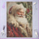 Santa Claus with holly decoupage sheet, festive red coat Christmas artwork, snowy background holiday crafting paper, RHDesigns seasonal ePaper for sale, joyful Santa Claus portrait design, handmade Christmas decor supply item, decorated tree mixed media surface, classic red hat Santa image, winter wonder holiday printable sheet, painterly Santa Claus collage art.