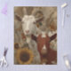 Goat decoupage paper, botanical animal art, 18x24 canvas-sized paper, RHDesigns by 2ChattyChicks, rustic farm animal print, floral goat design, vintage decoupage supplies, nature-inspired craft paper, warm-toned animal artwork, country chic canvas paper