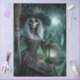 This haunting decoupage sheet features a skeletal witch cloaked in gothic elegance beneath a full moon. Her tattered lace dress, corseted bodice, and wide-brimmed pointed hat evoke eerie sophistication, while her hollow eyes and long white hair add spectral intensity. Holding a rustic broomstick and glowing lantern, she stands in a misty forest of twisted trees and creeping fog. Perfect for Halloween crafts, gothic journals, or supernatural mixed media, this design blends fantasy, mystery, and macabre beauty — ideal for layered collage, seasonal showcases, or storytelling art with a dark twist.