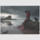 Irish mermaid with black cat, gothic shoreline fantasy art print, stormy castle coastal scene, red hair seaweed rock perch, enchanted ocean mythic creature design, Celtic folklore inspired wall decor, dramatic mystical seaside illustration, fantasy mermaid Ireland home accent, moody fairytale nautical art piece, RHDesigns Chalked with Love.