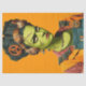 steampunk monsters decoupage paper design, Chalked with Love by Sue, RHDesigns Signature Series artwork, Halloween themed craft supply image, green skin stitched character illustration, mechanical gears horror art print, spooky industrial makeover project paper, bold orange background creepy decor, gothic steampunk DIY furniture accent, unique monster costume artistic paper.