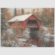 Decoupage Red Covered Bridge Winter Scene Tissue Paper