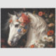 white horse floral mane art, romantic equine mixed media printable, whimsical horse with flower crown, spring horse roses wildflowers design, elegant animal art for crafting, mystical white horse printable design, vintage floral horse for decoupage, serene horse with colorful blooms, nature inspired horse artwork printable, DIY furniture horse art piece.