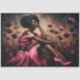 Decoupage Tissue Paper Hot Pink Poppies Woman, African American Beauty