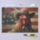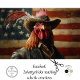 In a small town nestled in the heart of America, there lived a rooster named Rusty. Rusty wasn’t just any rooster; he was known far and wide for his unwavering vigilance and his unique sense of style. Every morning, as the first light of dawn broke over the horizon, Rusty would don his cowboy hat, adorned with a single feather, and take his place in front of the grand American flag that stood proudly in the town square.