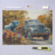 An enchanting scene featuring an old rusty truck parked on a country road, accompanied by a striking blue highland cow. The truck’s bed is filled with vibrant flowers in full bloom, adding a burst of colour to the rustic setting. The warm tones and foliage in the background suggest an autumn day, creating a picturesque rural landscape. These designs are created by RHDesigns of 2chattychicks for use with decoupage tissue paper, perfect for enhancing furniture, scrapbooking projects, canvas artwork, poster art, and home decor