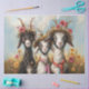 This delightful image features two adorable goats dressed up in charming accessories. The goat on the left wears a beautiful flower crown with pink and yellow blooms and holds a stick in its mouth, adding a playful touch. The goat on the right, partially obscured, is adorned with a stylish scarf and a bell, set against a backdrop of a blue sky with fluffy clouds and surrounded by vibrant flowers. This whimsical and heartwarming scene captures the essence of farm animal fashion and creativity, making it perfect for adding a touch of fun and charm to any collection. Created by RHDesigns of 2chattychicks, this artwork is ideal for use on canvas tote bags, posters, and home decor.