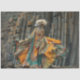 “Whimsical bohemian-style standard poodle dressed in an elaborate outfit with intricate beadwork and embroidery, set against a stunning geological backdrop.
