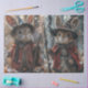 fantasy warrior rabbit, anthropomorphic animal art, digital illustration, rabbit in armour christmas, winter fantasy scene, snowy backdrop, rhdesigns decoupage tissue paper, fantasy art,