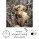 highland cow winter, winter landscape, snowy forest, festival animal, blue scarf, holiday season, shaggy highland, rhdesgisn decoupage tissue paper, whimscial scene,