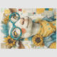 whimsical animal sunflower design, abstract decoupage paper for furniture, Born Again Refinishing Studio exclusive, RHDesigns signature series artwork, yellow blue scarf character print, fantasy figure for mixed media, bold colourful craft paper design, expressive creature with sunflowers, artistic collage for furniture makers, playful nature-inspired decoupage