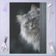 cat decoupage paper, long-haired cat craft design, green-eyed feline artwork, pet-themed decoupage design, expressive cat portrait for DIY, animal print for furniture art, premium decoupage paper, grey and white cat craft supply
