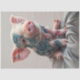 A striking and unique photo of a piglet adorned with colourful tattoos featuring various designs like roses, leaves, and geometric patterns. The piglet's pink skin and vibrant tattoos create an eye-catching contrast, making this image a true visual delight for animal art lovers.