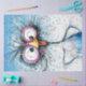 Meet the wire-haired wackadoodle bird, a delightful character bursting with personality! This vibrant blue bird sports a wild tuft of wiry feathers on its head and oversized pink-rimmed glasses that add to its quirky charm. With splashes of white paint-like markings and a playful orange beak, this whimsical illustration captures the essence of fun and creativity. Set against a colourful splattered background, this eccentric avian is sure to bring a smile to anyone’s face.