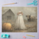 Welcome to Harvest Whimsy Hollow, where playful spirits meet pastoral charm. A sweet ghost in a floral pink hat stands beside a curious highland cow, surrounded by golden corn stalks, scattered pumpkins, and the weathered silhouette of an old barn. The soft beige backdrop and vintage textures evoke cosy fall afternoons, while the ghost’s lace-trimmed sheet adds a touch of gentle humour to the rural magic. Ideal for farmhouse Halloween decor, whimsical mixed media, or rustic autumn journals, this design blends innocence, imagination, and seasonal storytelling in one heartwarming scene