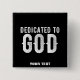 DEDICATED TO GOD COOL CUSTOMIZABLE WHITE TEXT 15 CM SQUARE BADGE