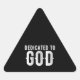 DEDICATED TO GOD COOL CUSTOMIZABLE WHITE TEXT TRIANGLE STICKER