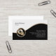 This deejay disc jockey business card features black and white segments separated by a wavy gold strip. An elegant gold icon of a scratch pad turntable lies on the lower left side of the design, that's generally suitable for businesses or professions related to music, bass, bassist, bass guitarist, musician, band, entertainment, rock themes.
