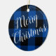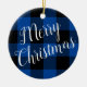 Deep Blue and Black Buffalo Plaid Merry Christmas Ceramic Tree Decoration