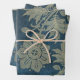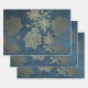 Deep Blue and Light Gold Flower Wrapping Paper Sheet