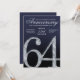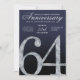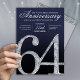 This modern anniversary invitation card features a striking diamond-style number sixty-four set against a deep navy blue background with refined silver accents. The faceted crystal detailing adds contemporary sparkle, while clean lines, smooth gradients, and subtle light textures create a polished, upscale appearance. The modern navy and silver color palette delivers a formal yet stylish feel, making this invitation ideal for hosting an elegant and memorable 64th anniversary celebration.