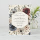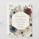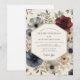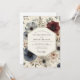 This design evokes a romantic and ethereal mood with its watercolor-style floral illustrations. Shades of deep blue, burgundy, and muted cream blend seamlessly amongst botanical foliage. The delicate blooms suggest a sophisticated yet whimsical affair.