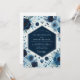 This enchanting design features a lush tapestry of deep blue and lighter blue florals with touches of muted greenery. Evoking a sense of deep, romantic elegance, the artwork is reminiscent of detailed botanical illustrations. The cool color palette creates a sophisticated and timeless atmosphere for a memorable occasion.