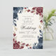 Deep Blue Burgundy Floral Flourish Wedding Invitation