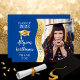 Deep Blue | Gold Graduate Wave Grad Cap Photo Thank You Card