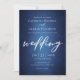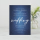 Beautiful deep shades of dark blue create a texture like water on this lakeside wedding invitation. Perfect waterfront invites for a ceremony in the evening by the lake with a water view. Elegant white minimalist script with your details on a gradient that feels like you are swimming underwater at night.