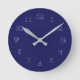 deep blue round clock with fabric font numbers
