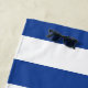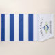 Add personalised beach towels to your beach house. They are customised with a deep blue and white stripe pattern. On the bottom there's an anchor with a decorative swirl going through it. Add your name to "beach House". Please visit our store for other designs and colours.
