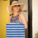 Deep blue&white cabana stripes Beach Towel