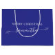 Deep Blue White Merry Christmas Bow Signature Name Large Gift Bag