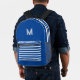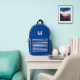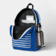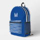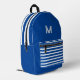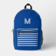 Classic backpack with some parts in cabana stripes in deep blue ( #004095) and white .Other parts come in solid blue. Personalise it now with a monogram . Design by Alma Wad .