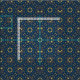 Modern trendy fabric design in ethnic style featuring a seamless pattern made of geometric shapes in yellow, brown and turquoise on a deep blue background.