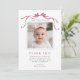Deep Blush Pink Bow Birthday Photo Thank You Card