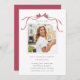 Invite friends and family to celebrate the graduate with this elegant invitation, featuring a deep blush ribbon bow with a photo.