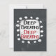 A cute typographic design that says "Deep Breaths, Deep Breaths". It's black and red text on a white square with funky, playful white dots surrounding it, all on a grey background.