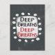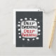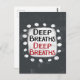A cute typographic design that says "Deep Breaths, Deep Breaths". It's black and red text on a white square with funky, playful white dots surrounding it, all on a grey background.