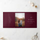 Classic style all in one tri-fold wedding invitation featuring a simple yet elegant design in a deep burgundy color that is perfect for a fall wedding or a winter / Christmas wedding. Use the template to add your favorite photos.