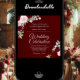 This beautiful wedding invitation features a lovely design with hand painted watercolor roses in shades of red and blush pink on a deep marbled burgundy red coloured background. The design is simple yet elegant, with a bohemian chic style. Perfect for a fall or autumn ceremony.