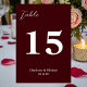 Deep Burgundy Minimalist Wedding Table Number