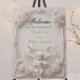 Evoke the grandeur of a bygone era with this Victorian-inspired design, featuring deep burgundy florals and architectural details for a classic formal union.This design presents a highly detailed visual composition mimicking the depth of architectural stonework. The layout is anchored by a faux bas-relief frame featuring ornate columns and decorative molding in antique cream and beige tones. At the header, a cherub playing a violin sits atop the arch, flanked by a pair of white doves, symbolizing peace and love. The center highlights a silhouette cameo of a bride and groom, surrounded by deep burgundy roses that provide a rich color contrast against the neutral stone-effect background. Typography combines an elegant calligraphy script for names with a structured serif font for details, ensuring hierarchy and readability.