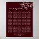 White line art cherry blossoms on a deep burgundy / wine red background and custom texts for 150 names, bride and groom names and the wedding date. Matching boho wedding products available.