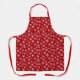 Apron in deep Christmas red scattered with classic white snowflakes
