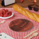 Deep Crimson Painting with Geometric Shapes Paper Plate
