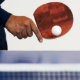 Deep Crimson Painting with Geometric Shapes Ping Pong Paddle